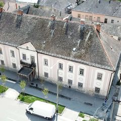 irodája is 1950-ig. Egyemeletes saroképület barokk homlokzati kiképzéssel. A